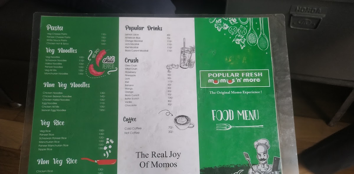 Welcome to POPULAR FRESH Momos’n’more, renowned as the best spot for momos in Satna! Nestled beside the Union Bank of India, this eatery offers a delightful mix of vegetarian and non-vegetarian dishes that leave customers raving about their flavors. The moment you step inside, you're greeted by a unique ambience themed around the Indian Army, creating a cozy yet impressive atmosphere.
